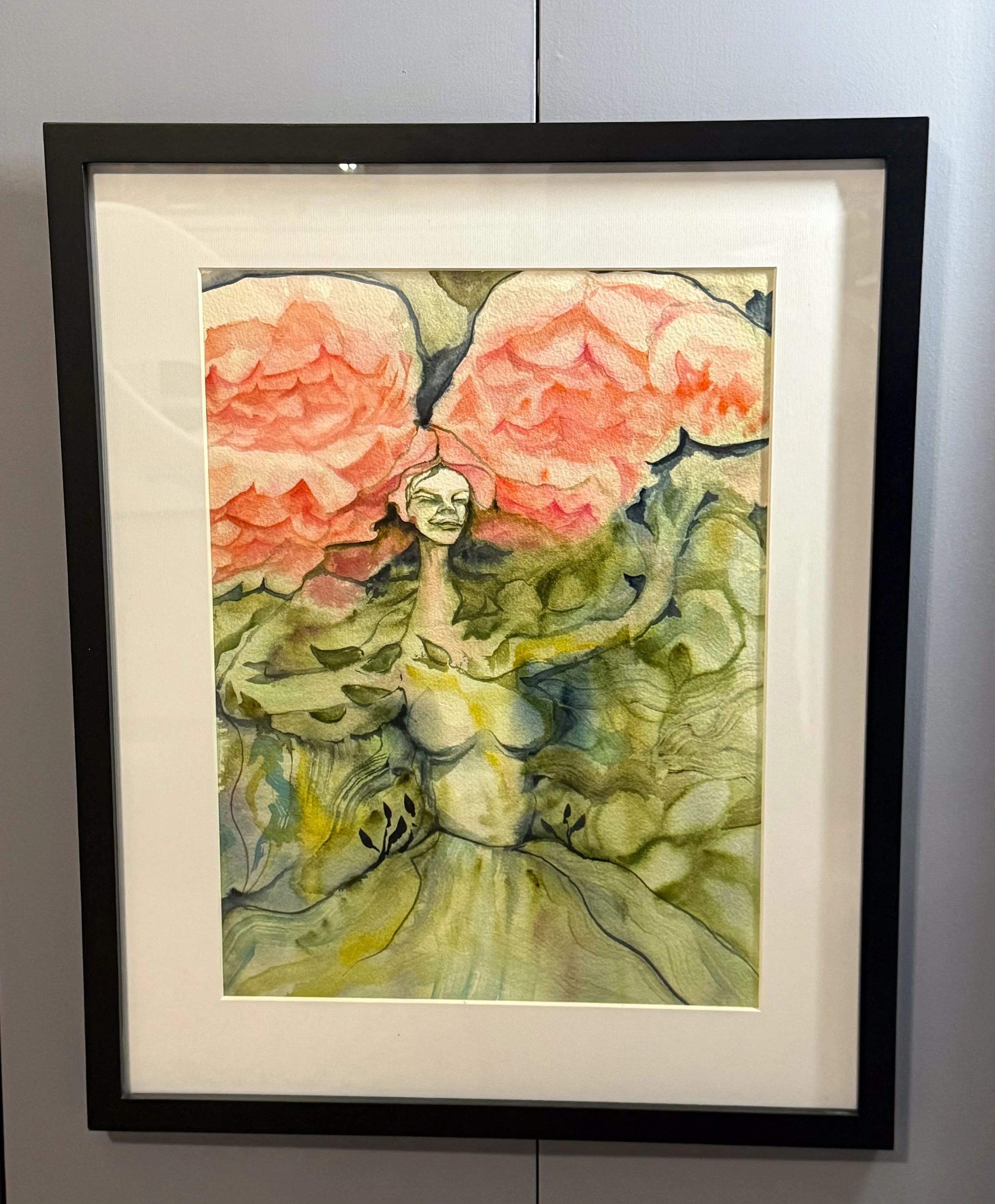 “Flower girl” (RIGHT) is an original black framed watercolor, signed