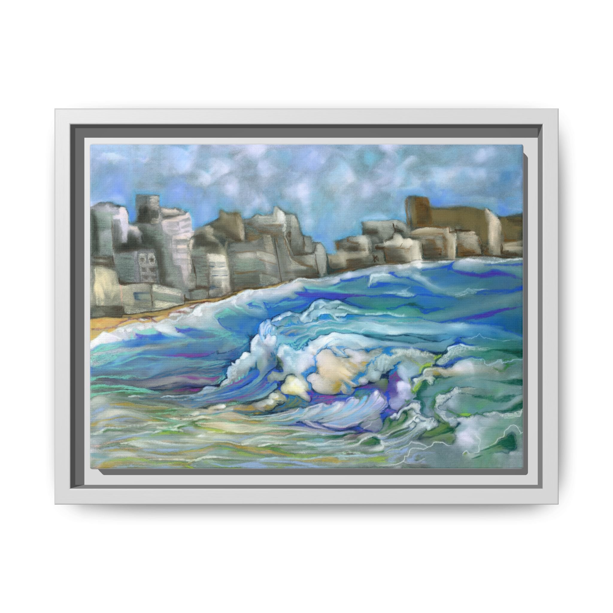 This is an white framed print of my original Pastel "Cancun" painting.