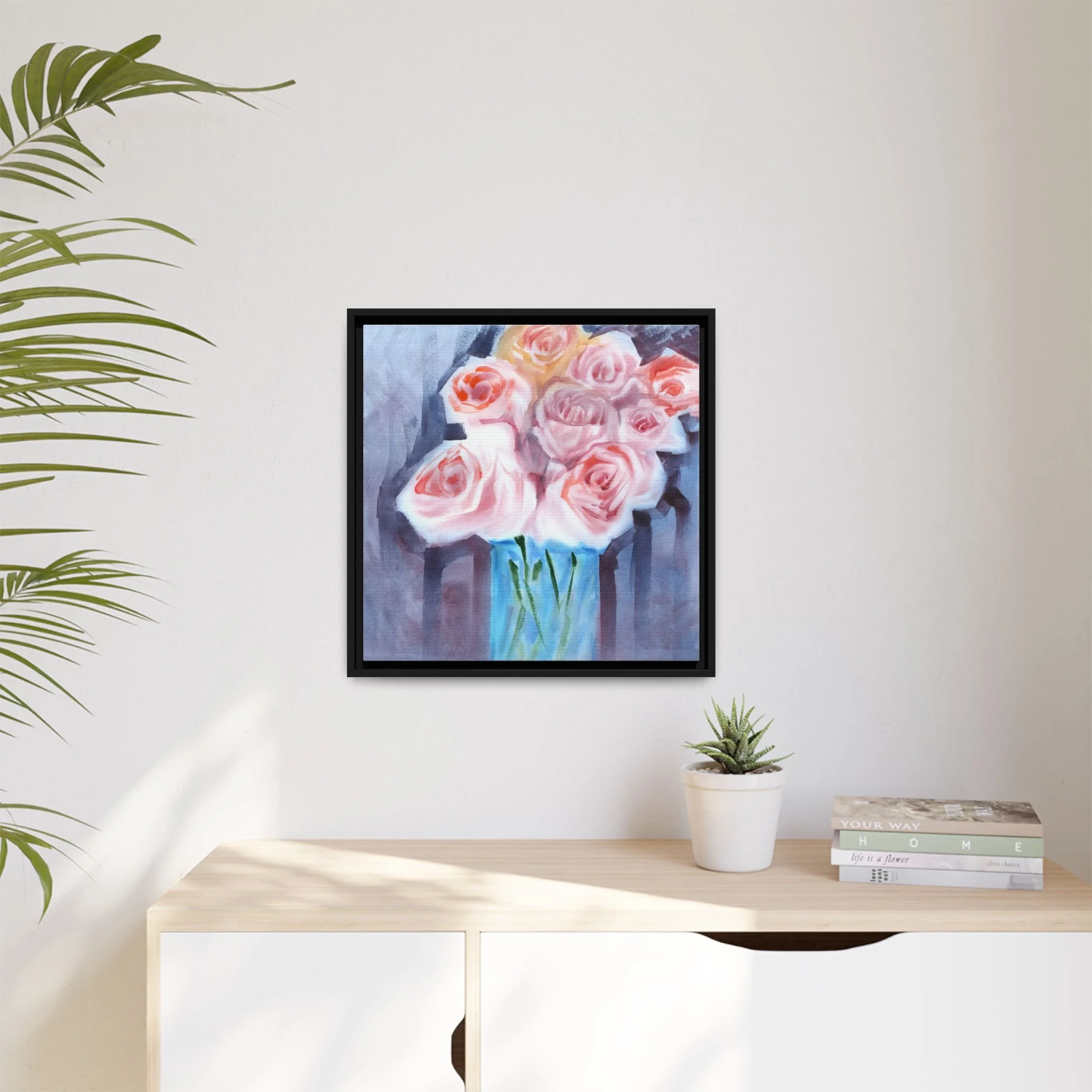 This is a Black framed print of my original watercolor"Sultry Roses" painting.